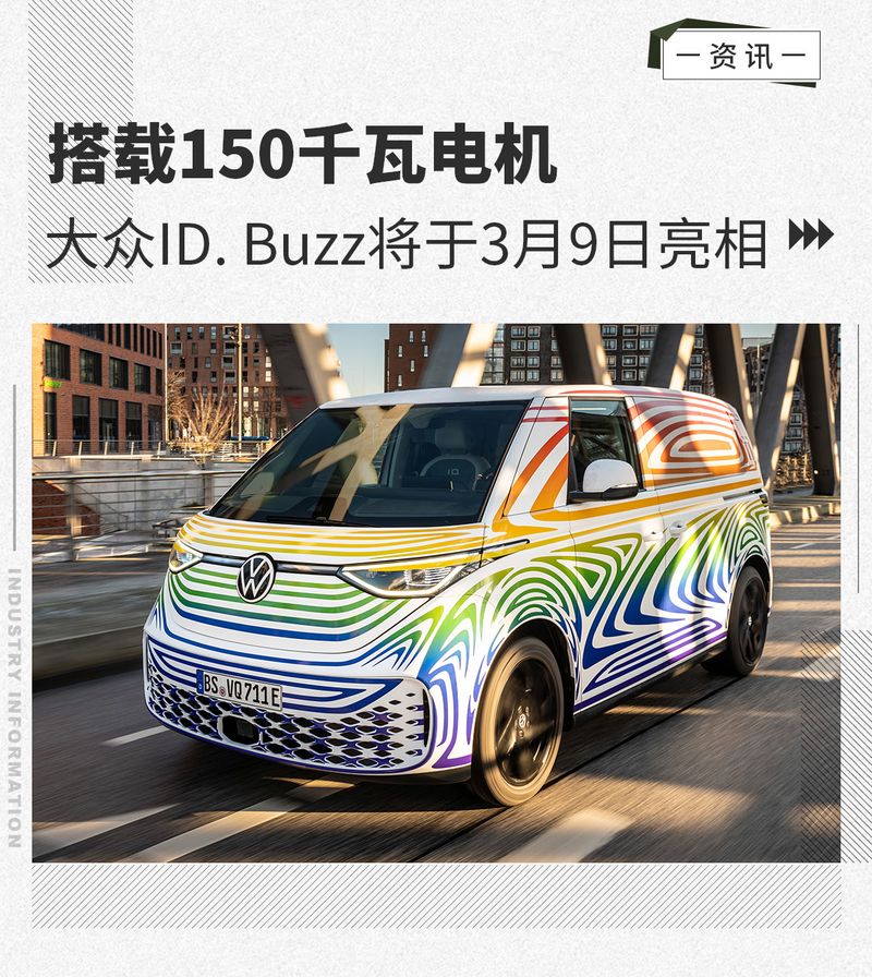 日前,网通社从官方获悉,大众ID. Buzz将于3月9日首发亮相。新车外观采用了V型前脸设计,在保持大众ID.家族设计风格的同时,也致敬了大众经典车型T1。ID. Buzz基于大众MEB平台打造,搭载150千瓦电机并匹配82千瓦时高压锂离子电池组。据悉,该车将在今年上半年正式投产,并在9月进入欧洲市场。