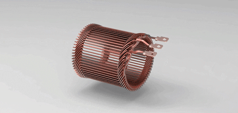 扁线电机,简单来说就是将传统电机缠绕的铜线从圆线变为扁线,以提升电机的功率密度。